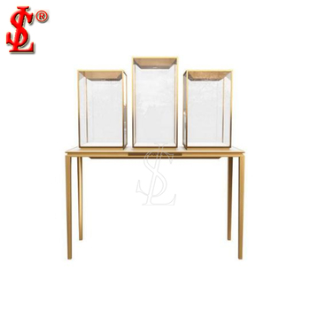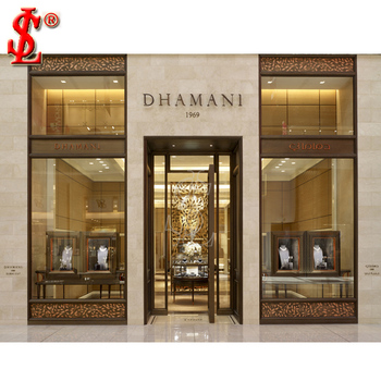 Estante de exhibición de joyería de vidrio de moda Diseños de escaparate de pared Exhibición de joyería para tienda de joyería de oro